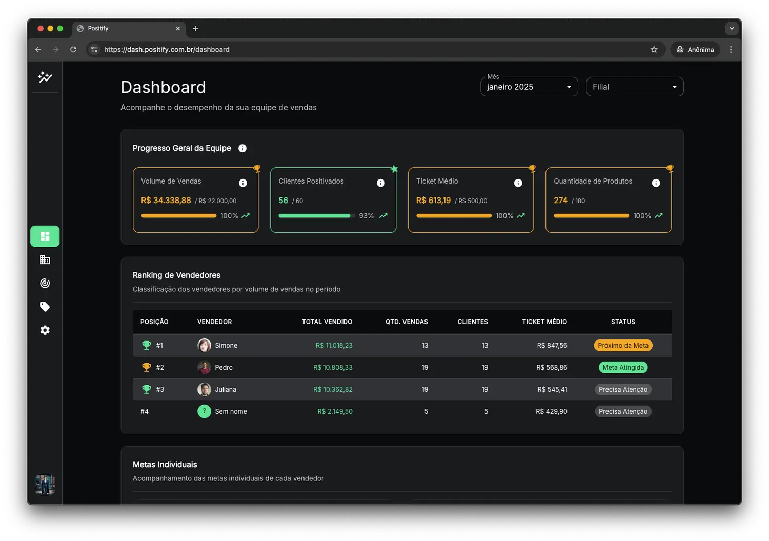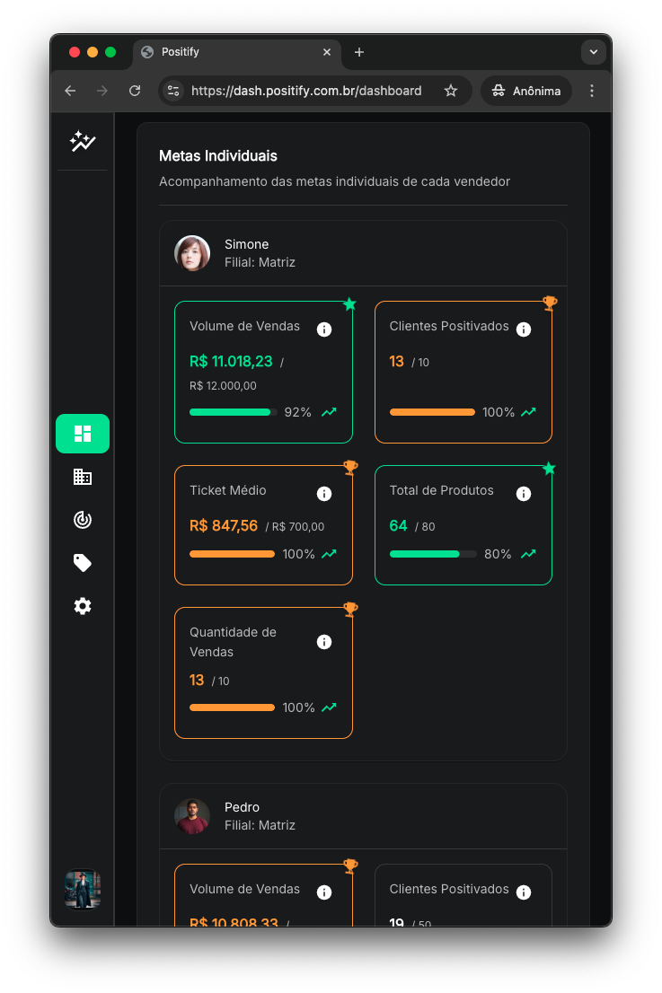 A ferramenta definitiva para gerentes e vendedores acompanharem metas e alcançarem resultados extraordinários de forma fácil e intuitiva.